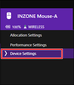 - Wenn ein Update für die Maus und den kabellosen Dongle verfügbar ist, wird neben den Device settings (Geräteeinstellungen) ein roter Punkt angezeigt.