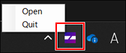 - Wenn die PC-App INZONE Hub ausgeführt wird, klicken Sie mit der rechten Maustaste auf das Symbol INZONE Hub, das auf der Taskleiste angezeigt wird, und wählen Sie dann Quit (Beenden) aus.