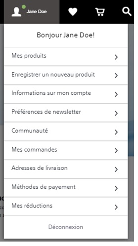 Vous pouvez également accéder à ces onglets en cliquant sur votre nom en haut de la page d'accueil et en sélectionnant la ou les rubrique(s) appropriée(s) dans le menu déroulant :