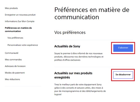 - Accédez à la section Préférences de communication.