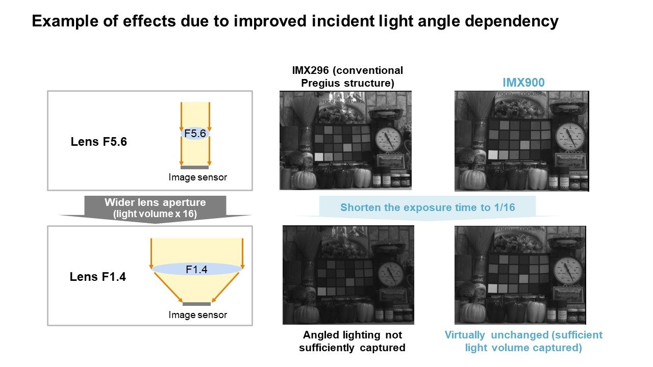 Der IMX900 verfügt über eine innovative Pixelstruktur, die die Effizienz der Lichtbündelung und die Nahinfrarot-Empfindlichkeit im Vergleich zu herkömmlichen Produkten massiv verbessert. Dies ermöglicht es, die Pixelgrößen zu verkleinern und zugleich die Schlüsseleigenschaften zu bewahren, die für industrielle Bildsensoren erforderlich sind. Dank dieses Designs wird die branchenweit höchste Auflösung2 von 3,2 effektiven Megapixeln bei einem 1/3,1-Typ-Global-Shutter-System erreicht, das mit dem S-Mount (M12) kompatibel ist, dem am weitesten verbreiteten Objektivanschluss für kompakte Industriekameras und integrierte Vision-Kameras.